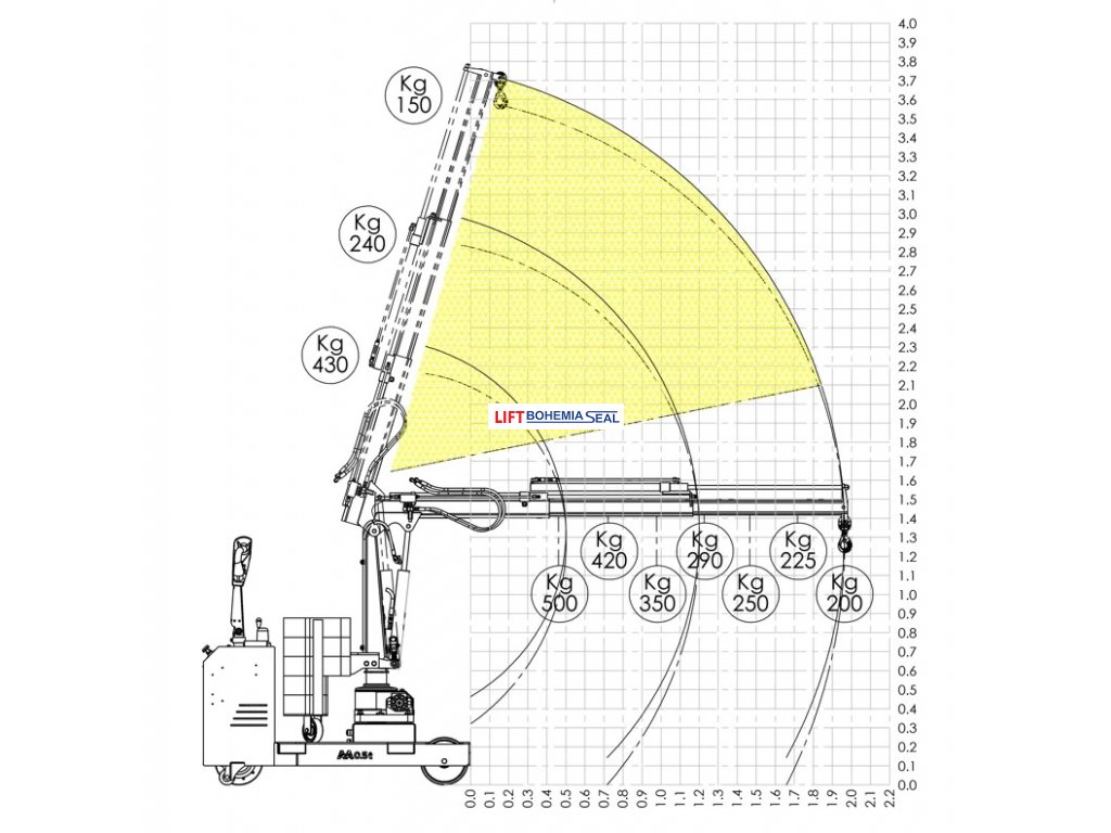 DYNAMICKÝ OMEZOVAČ MAXIMÁLNÍHO ZATÍŽENÍ: ORBIT je standardně vybaven systémem pro omezení maximálního povoleného zatížení v každé poloze výsuvu, který aktivuje mechanismus, který blokuje posun a výstup břemene, zajišťuje funkčnost jeřábu v absolutní bezpečnosti a který signalizuje, když se jeřáb vrátí do povolené polohy, rehabilituje ovládací prvky.